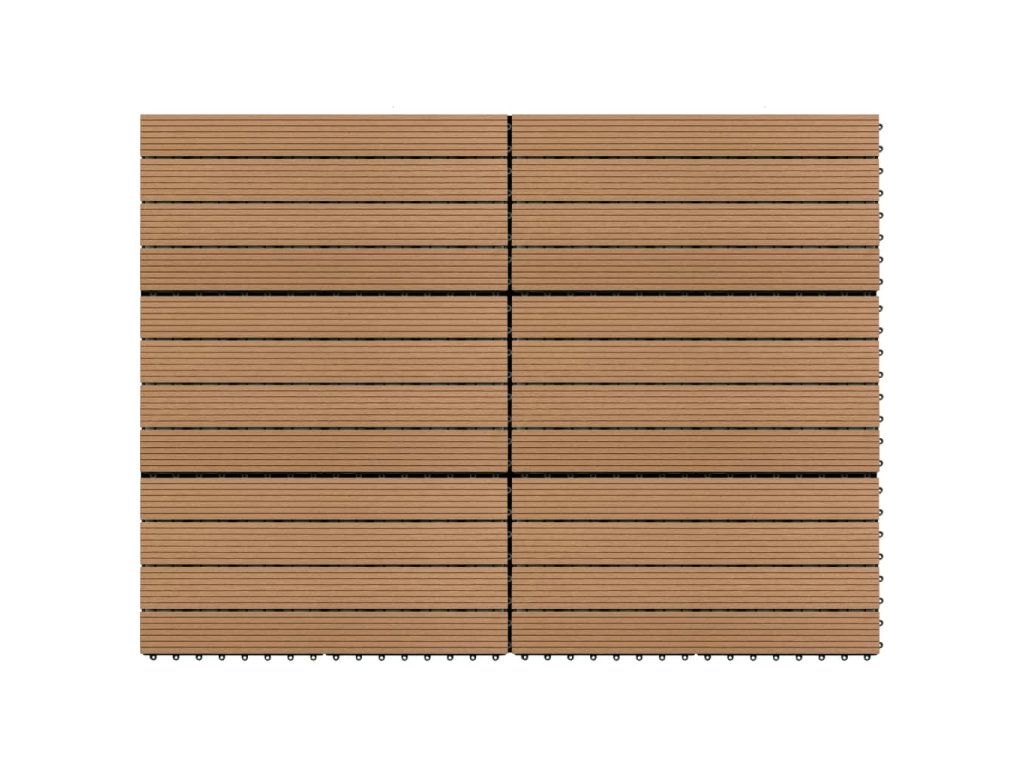 Táto sada terasových dlaždíc so 6 kusmi poskytuje celkovú plochu 1,08 m² a je ideálna na terasy, balkóny, kúpeľne alebo na akékoľvek miesto pri bazéne alebo vírivke.