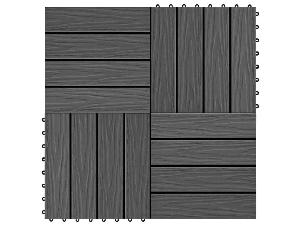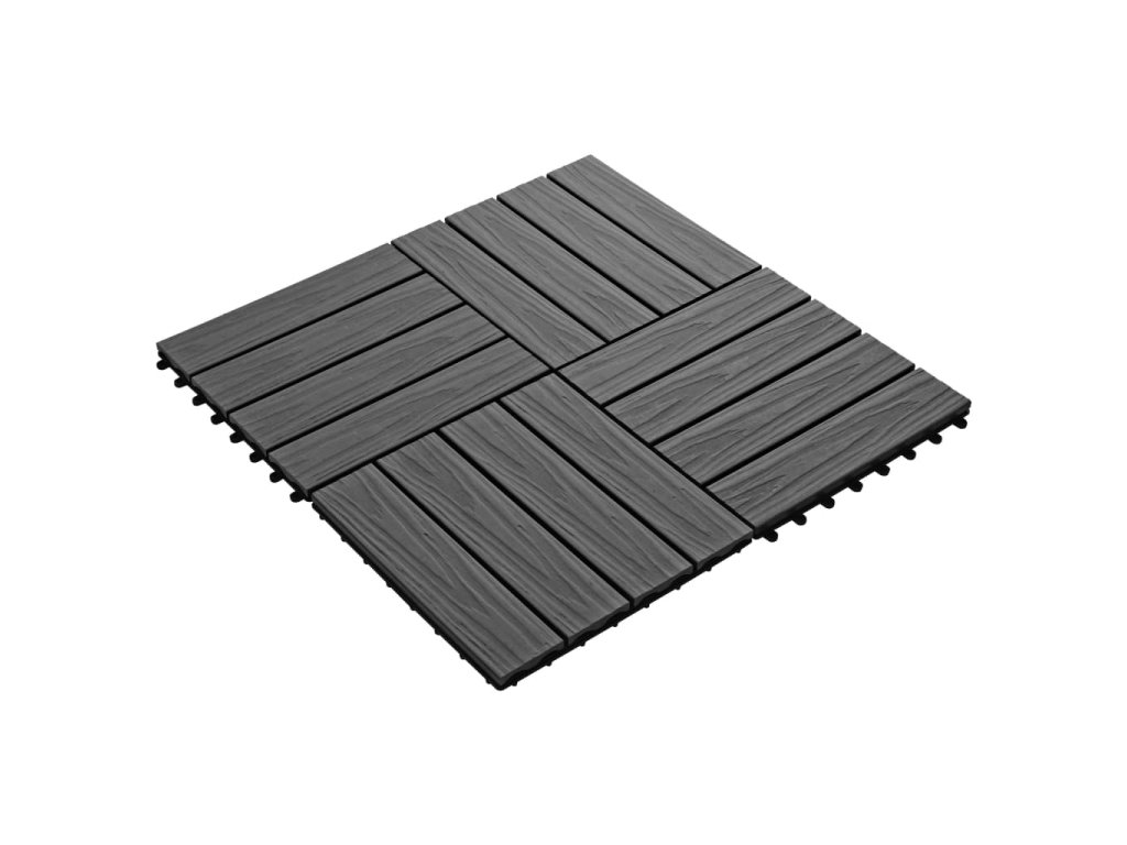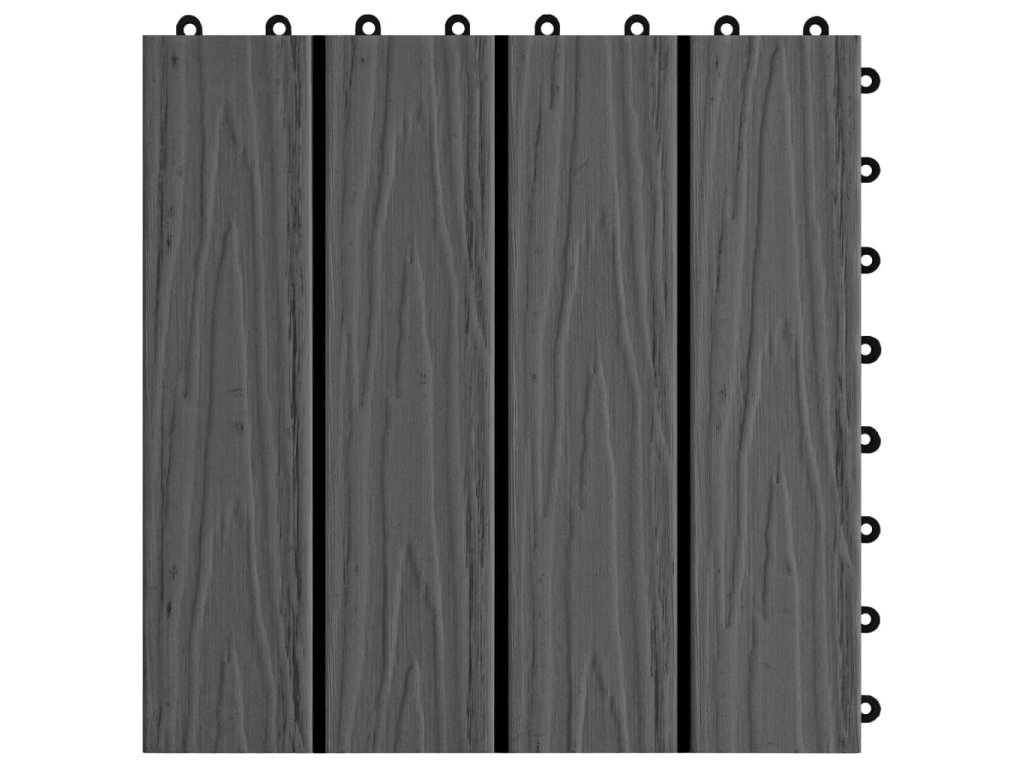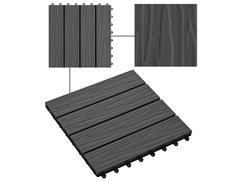 Sada hlboko reliéfnych dlaždíc z WPC obsahuje 11 dlaždíc, pričom každá má rozmery30 x 30 cm, a pokrýva celkovú plochu 1 meter štvorcový. Vašej terase, balkónu, kúpeľni, bazénu či domácemu wellness dodá čistý vzhľad.