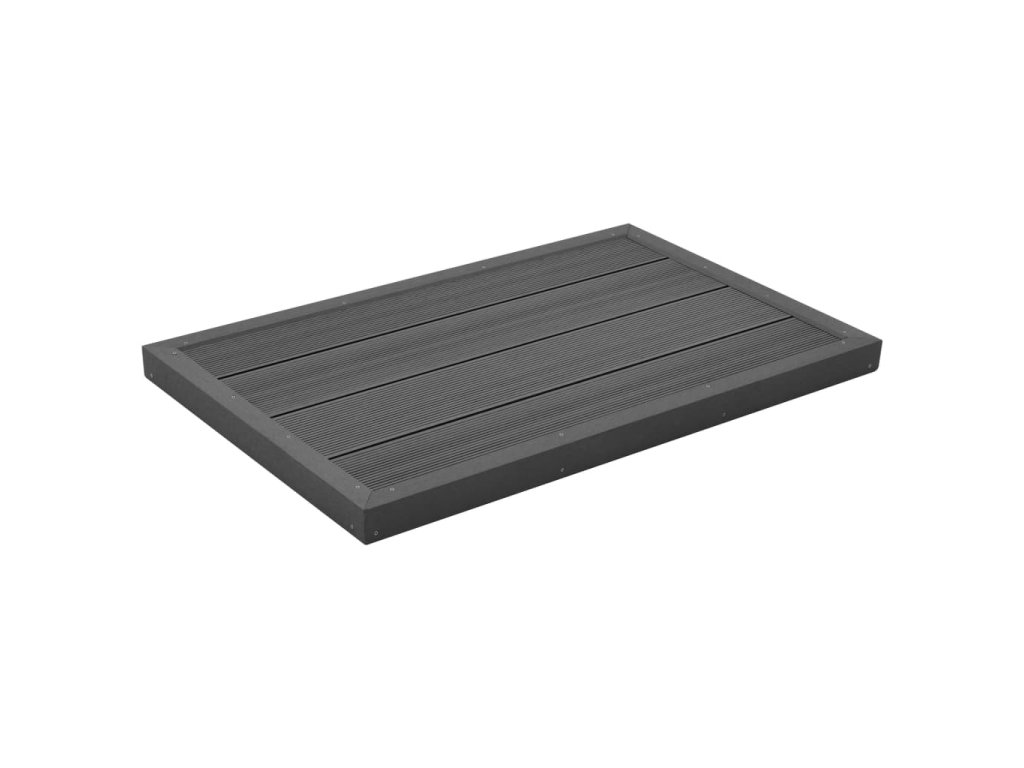 Vonkajší podlahový prvok je vyrobený z pevného, trvácneho a vodeodolného drevoplastového kompozitu (WPC). Protišmyková je aj horná aj spodná strana. Na tento protišmykový podlahový prvok môžete pripevniť solárny sprchový kút, takže nebudete musieť vŕtať upevňovacie otvory do dlažby. Pevný WPC panel môže byť tiež použitý aj na vytvorenie protišmykovej základne pre váš bazénový rebrík. Vďaka svojej nevýraznej farbe a protišmykovému dizajnu je naša drevoplastová doska ideálna aj na použitie ako rohož.