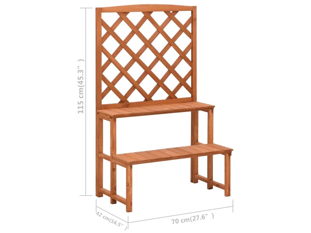 Tento stojan na rastliny je vyrobený z masívneho jedľového dreva, vďaka čomu je pevný a vhodný na vonkajšie použitie. Má dve police v rôznych výškach s dostatočným priestorom na vystavenie rastlín v kvetináčoch a záhradných ozdôb. Rebríkový dizajn krásne pozdvihne vzhľad kvetov a pomôže rastlinám získať viac slnečného svetla a lepšie rásť. Okrem toho mriežka ponúka vynikajúcu oporu pre popínavé rastliny.