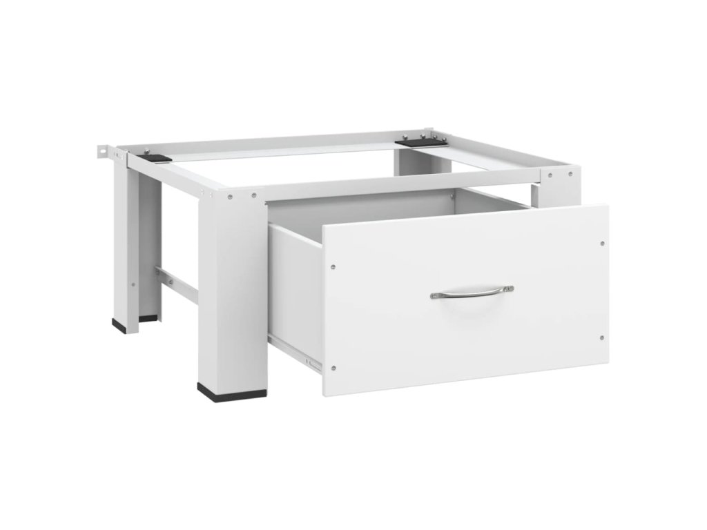 Podstavec je vyrobený z ocele, vďaka čomu udrží práčky s hmotnosťou do 100 kg. Protišmykové podložky zabezpečia, aby práčka zostala na svojom mieste. Pogumované nohy podstavca sa nešmýkajú a zároveň zabránia tomu, aby sa podlaha pod ním poškrabala. Podstavec má aj zásuvku, ktorá poskytne dodatočný úložný priestor.
