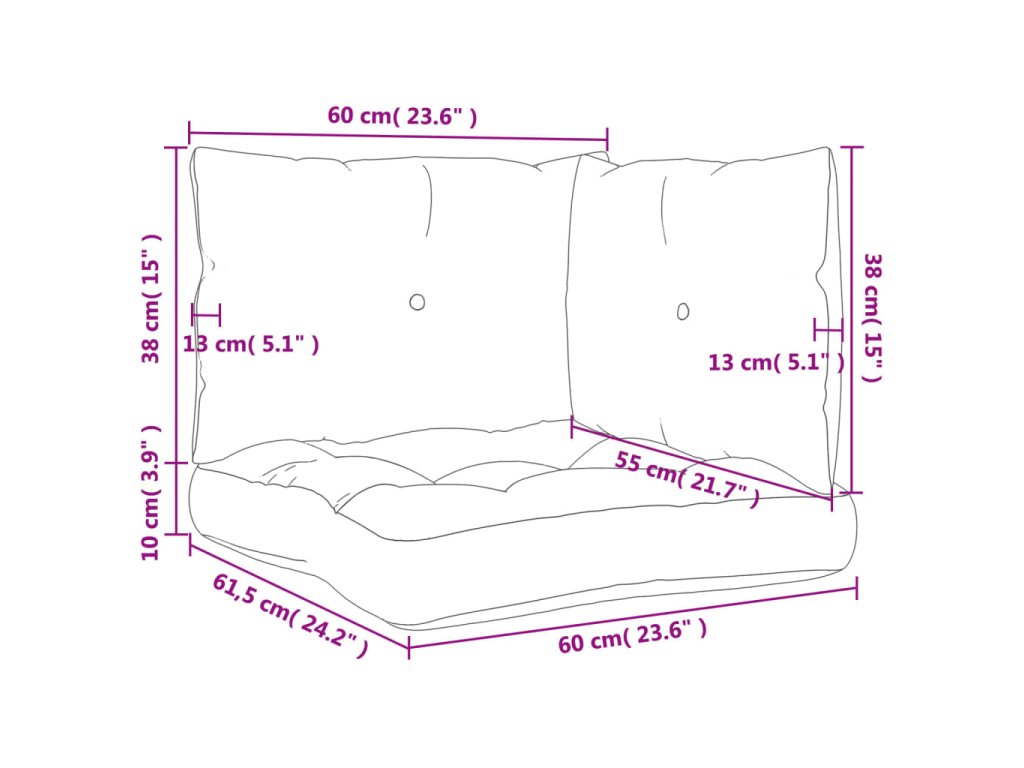 - Rozmery bočného vankúša: 55 x 38 x 13 cm (D x Š x H)
