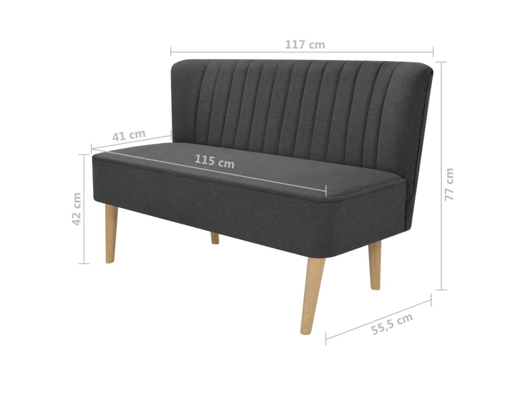 Pohovka má odolné textilné čalúnenie a kvalitný drevený rám, ktorý prispieva k jej robustnosti a trvácnosti. Čalúnené sedadlo zvyšuje pohodlie.