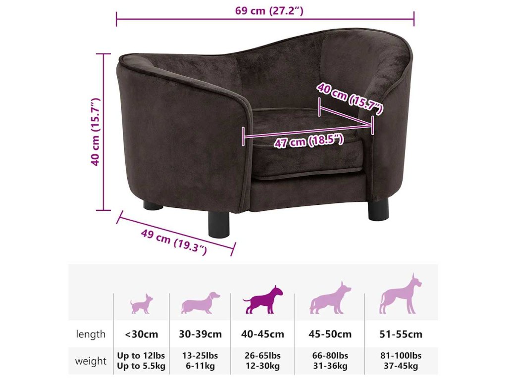 Pohovka pre domáce zvieratá má hustú výplň a drevený rám s mäkkým plyšovým poťahom, a tak sa na nej vášmu štvornohému kamarátovi bude odpočívať naozaj pohodlne. Drevené nohy s protišmykovým dizajnom dodávajú celej konštrukcii potrebnú stabilitu a pevnosť. Vonkajšie telo je taktiež mimoriadne odolné, a tak vášmu zvieratku poskytne bezpečné miesto na oddych. Poťah podložky sa dá oprať, aby pohovka zostala krásne svieža.