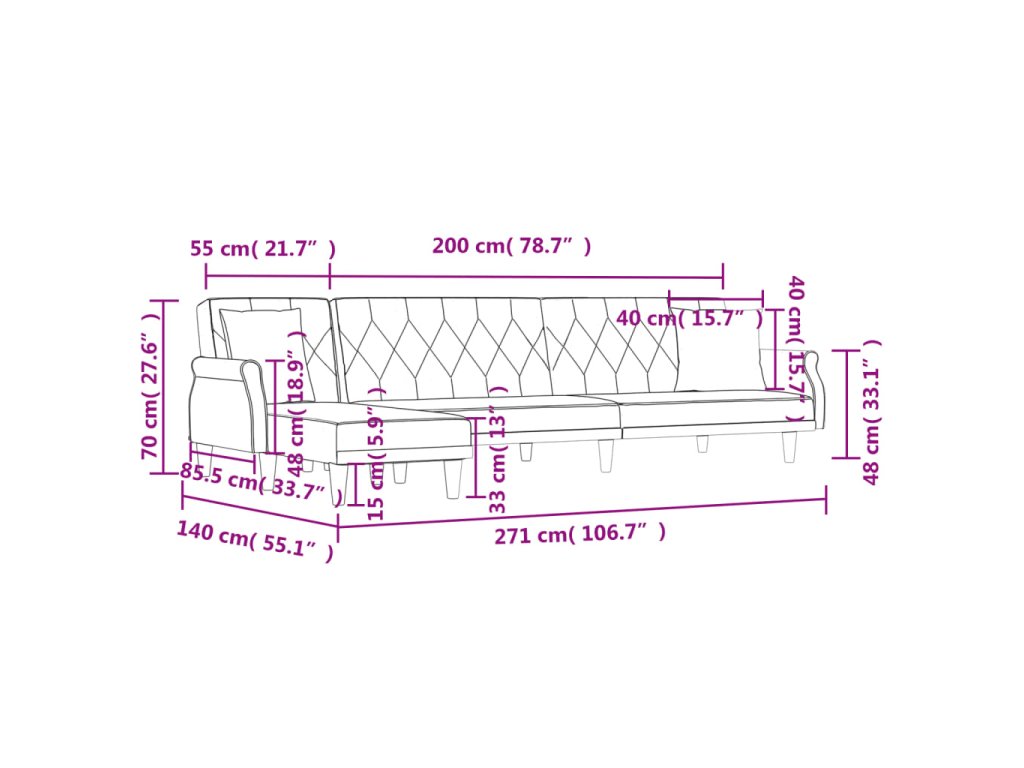 - Celkové rozmery: 271 x 140 x 70 cm (Š x H x V)