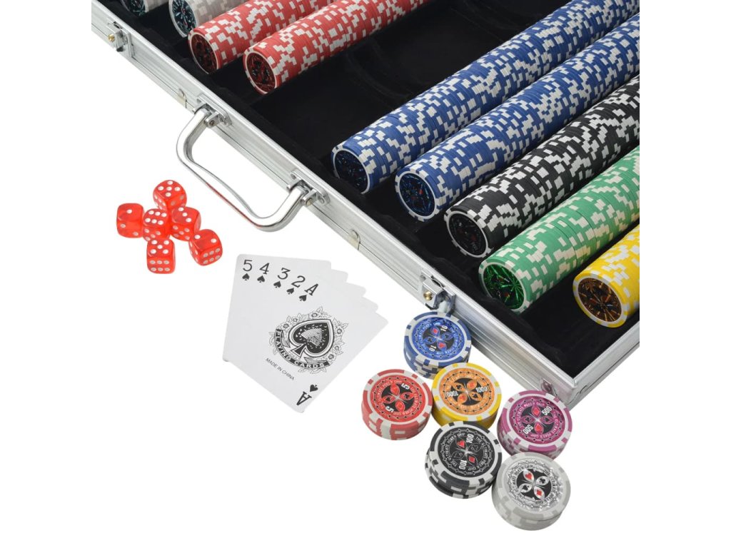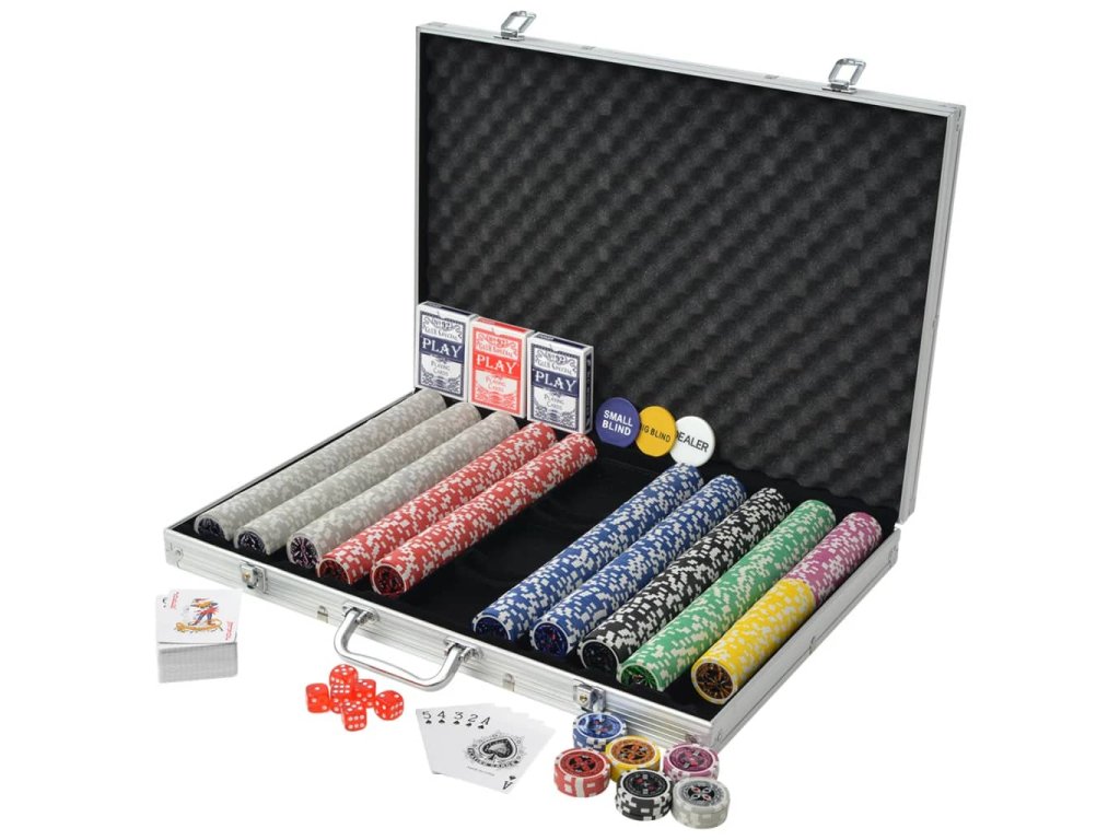 Táto sada obsahuje 6 kasínových kociek, 3 balíčky kariet, 1 žetón small blind, 1 žetón big blind, 1 žetón dealer a 1000 laserových žetónov. Táto sada je dodávaná v hliníkovom kufríku.