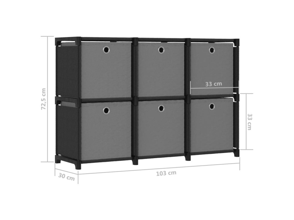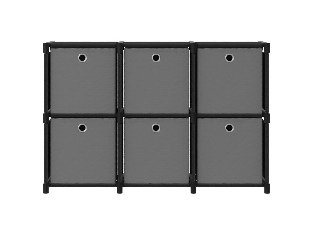 Úložný stojan je vyrobený z tkaniny a oceľového rámu, vďaka čomu je pevný a stabilný. Táto samostatne stojaca polica má 6 otvorených priehradiek a každá priehradka obsahuje látkový box, ktorý poskytuje dostatok úložného priestoru pre vaše veci a udržuje vašu izbu upratanú. Regál na domáce použitie navyše slúži ako ideálne miesto na uloženie kníh, zberateľských predmetov, fotografií, ocenení a malých rastlín v kvetináčoch, keď vyberiete boxy.