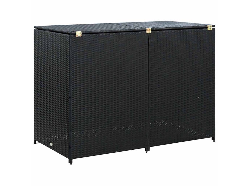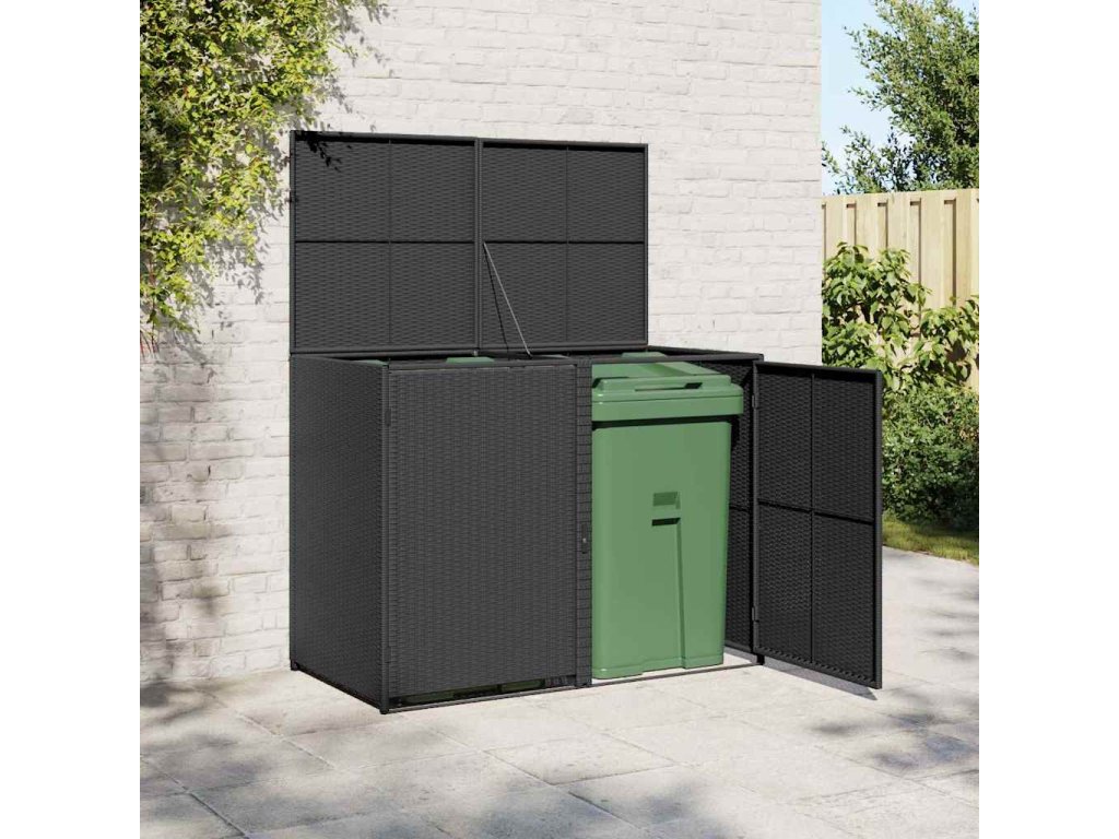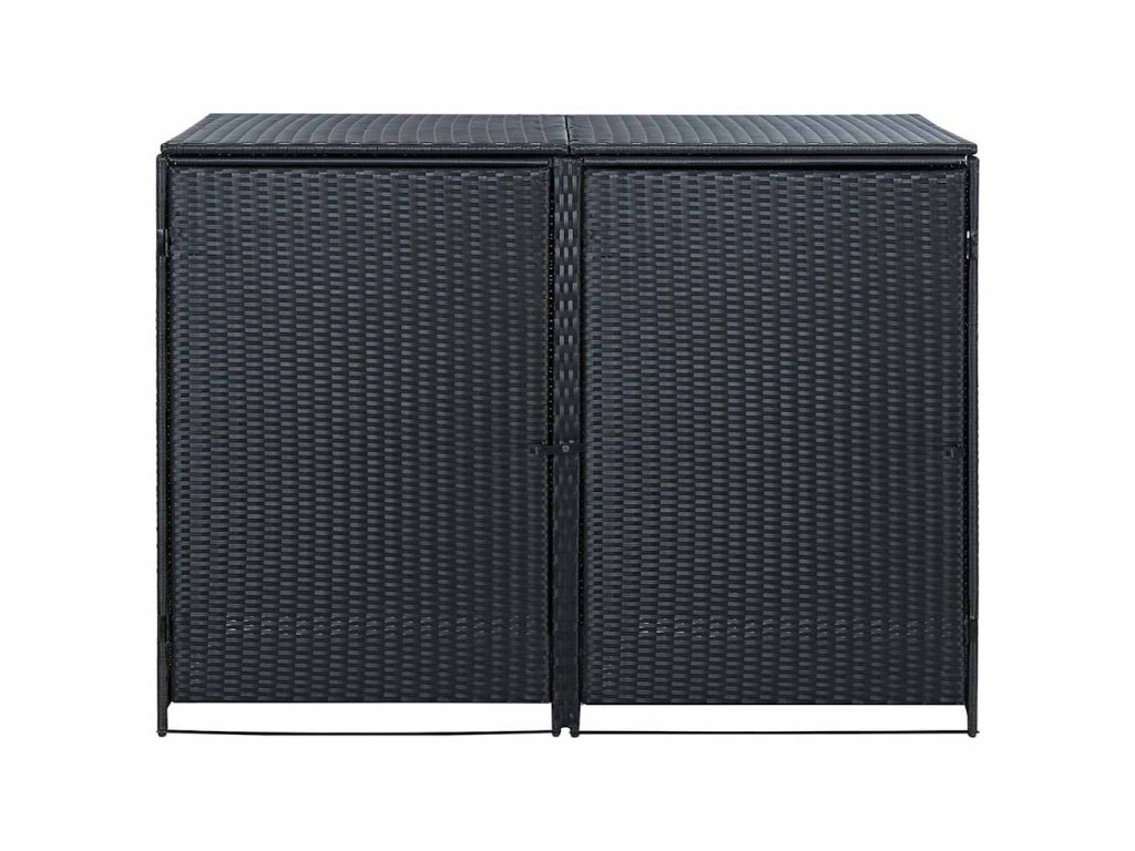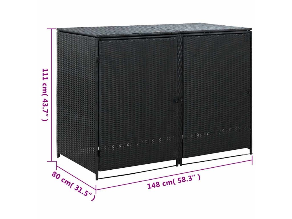 vidaXL Polyratanová ohrada na dva vonkajšie odpadkové koše, čierna 148x80x111 cm
