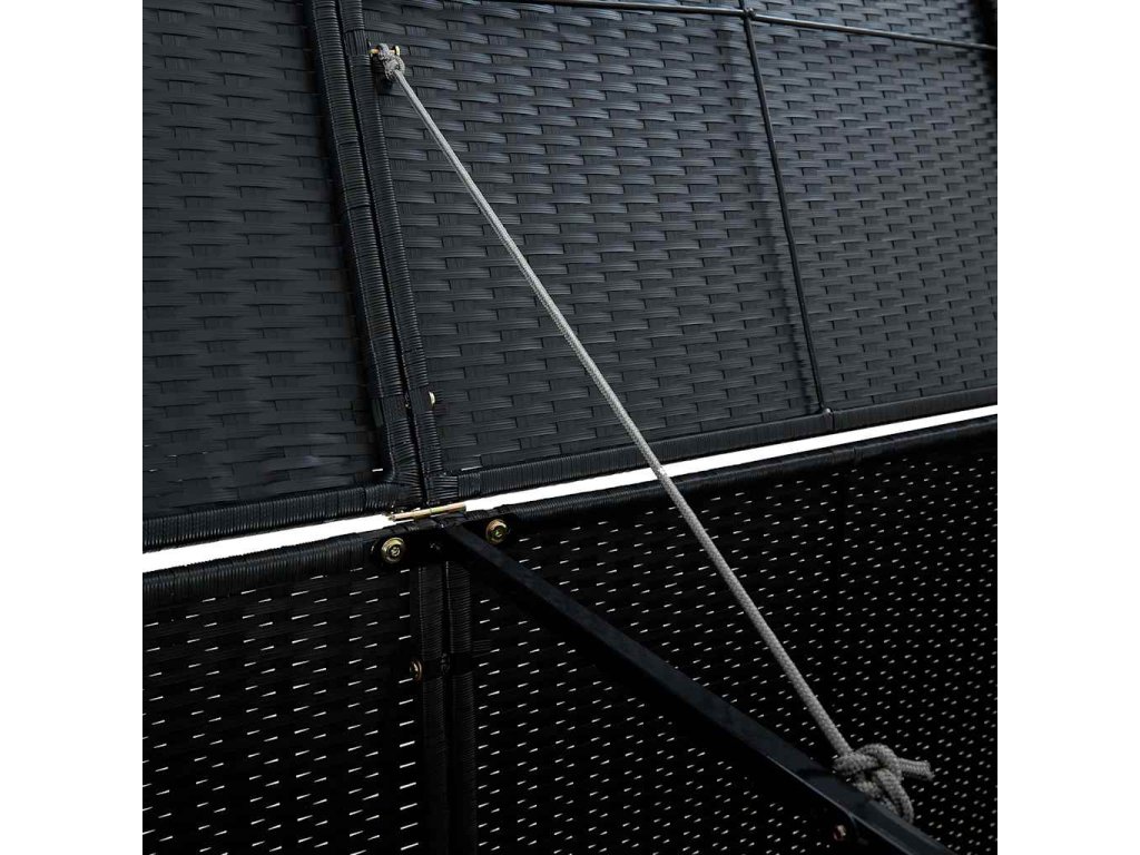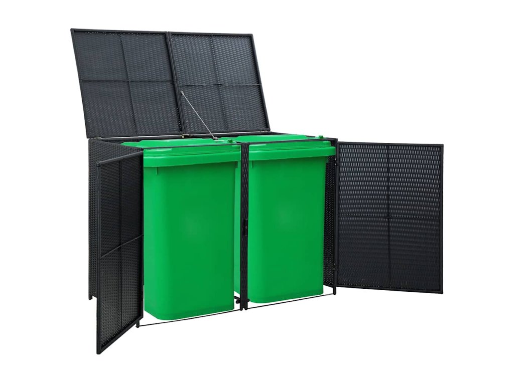 Ohrada má poklop, ktorý sa dá otvoriť pre ľahký prístup ku košom. Na prednej strane má dve samostatne otvárateľné dvere so systémom uzamknutia, aby sa mohli koše jednoducho vybrať a vyprázdniť. Ohrada je vyrobená z vysoko kvalitného PE ratanu, takže je veľmi pevná, trvácna, vodeodolná a odolná voči hnilobe. Ohrada je vhodná pre 2 vonkajšie odpadkové koše a bude sa hodiť do každej záhrady.