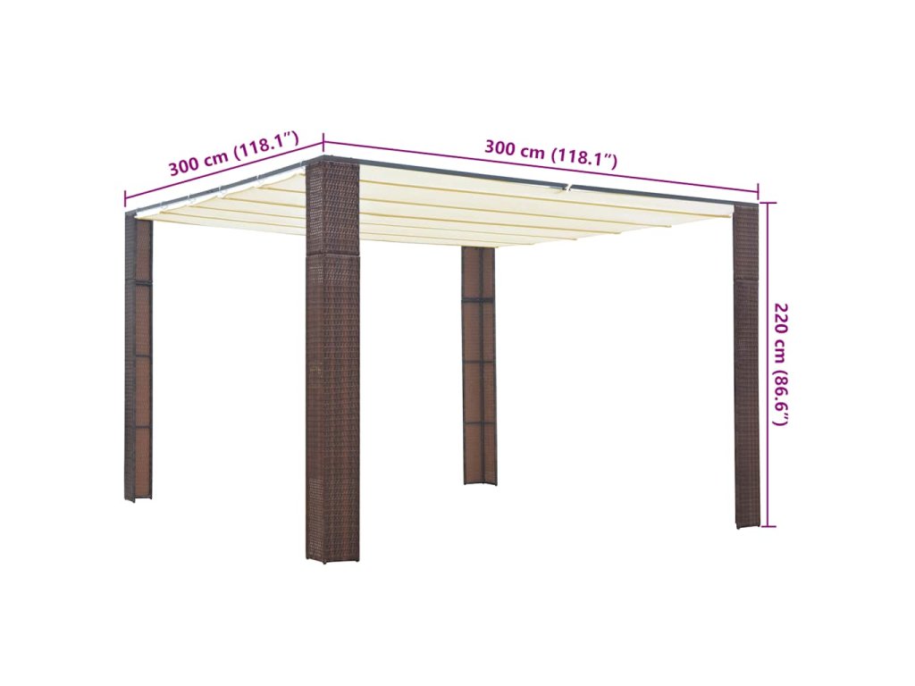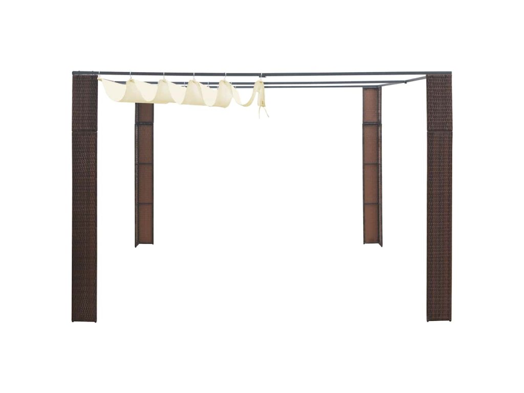 Altánok je vyrobený z PE ratanu, takže sa dá ľahko očistiť, je odolný a vhodný na každodenné používanie v exteriéri. Oceľové rámy s práškovou povrchovou úpravou stanu dodávajú pevnosť a trvácnosť. Posuvná strecha poskytuje potrebnú ochranu pred slnkom a dažďom a postará sa o to, aby vám nenarušili zábavu počas rodinných stretnutí, grilovačiek, popoludňajších piknikov a narodeninových osláv.