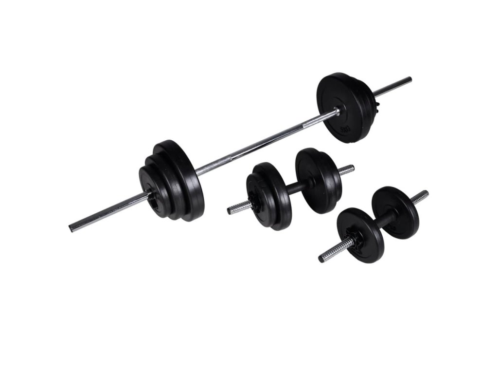 Táto sada jednoručných a obojručných činiek obsahuje pevné pochrómované tyče s rychloupínacou pružinovou objímkou (pre obojručnú tyč), protišmykové rukoväte a vrúbkované hviezdicové uzávery (pre jednoručné tyče) pre bezpečné upevnenie kotúčových závaží . Budete tak môcť cvičiť bez obáv o svoje bezpečie. Posilňovacie kotúče sú vyrobené so silným plášťom z polyetylénu. Dajú sa kombinovať rôznymi spôsobmi, pre rôzne tréningové požiadavky.