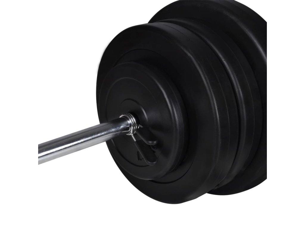 Súprava činiek barbell a dumbbell obsahuje pevné pochrómované činkové tyče s rychloupínacou pružinovou objímkou (pre tyč barbell), protišmykové ryhované rukoväte a vrúbkované hviezdicové uzávery (pre tyče dumbbell), ktoré zaisťujú bezpečné upevnenie kotúčových závaží. Budete tak môcť cvičiť bez obáv o svoje bezpečie. Posilňovacie kotúče sú vyrobené s robustným plášťom z polyetylénu. Dajú sa kombinovať tak, aby vyhovovali rôznym tréningovým požiadavkám.