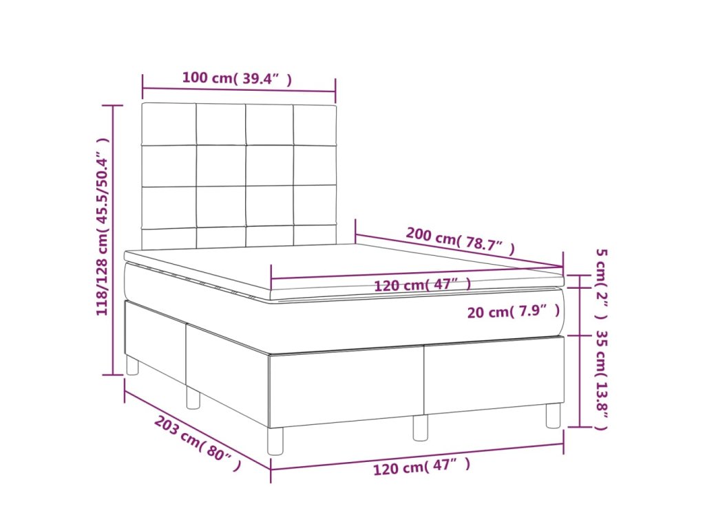 - Celkové rozmery: 203 x 120 x 118/128 cm (D x Š x V)