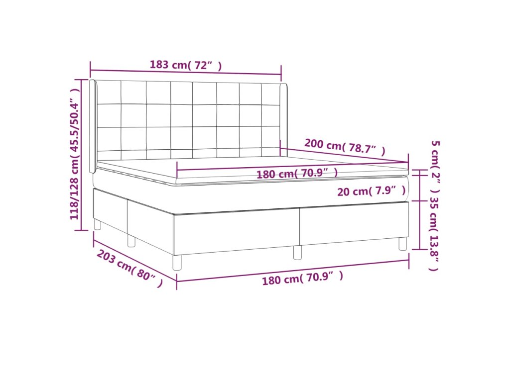 - Celkové rozmery: 203 x 183 x 118/128 cm (D x Š x V)