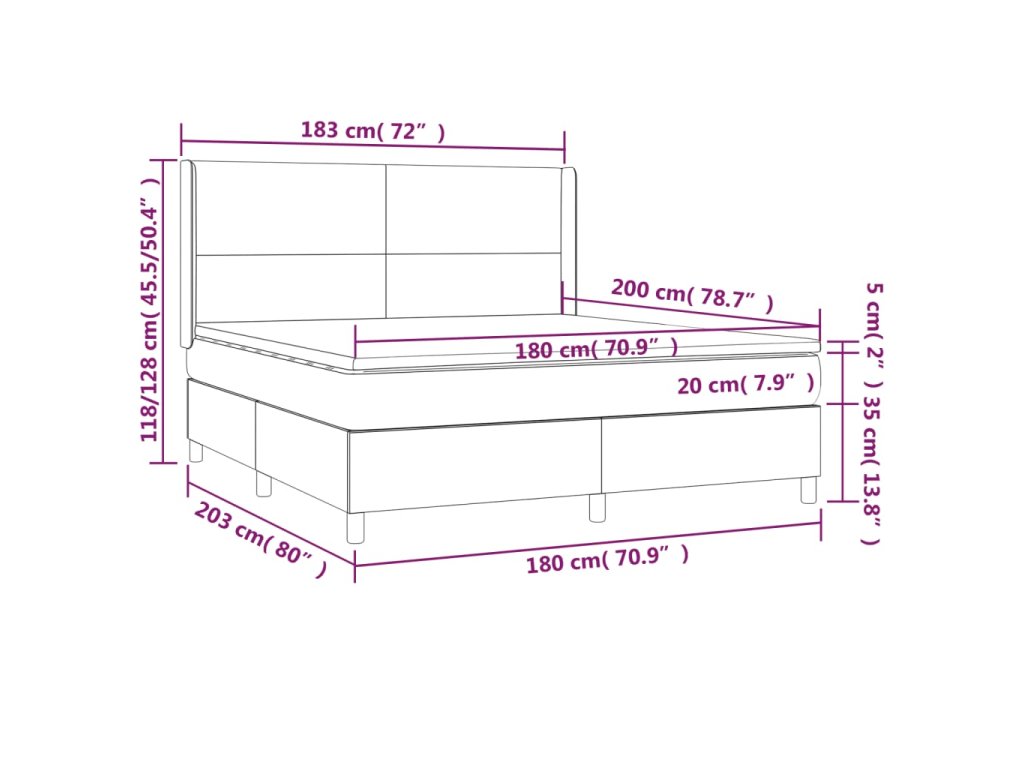 - Celkové rozmery: 203 x 183 x 118/128 cm (D x Š x V)