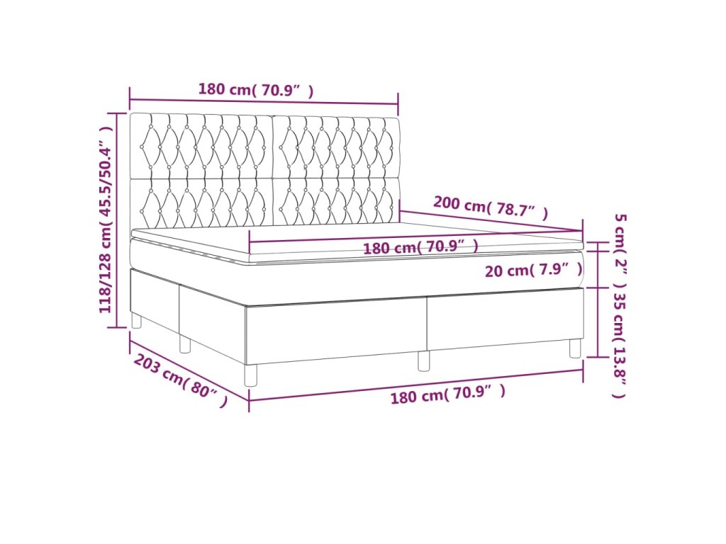 - Celkové rozmery: 203 x 180 x 118/128 cm (D x Š x V)