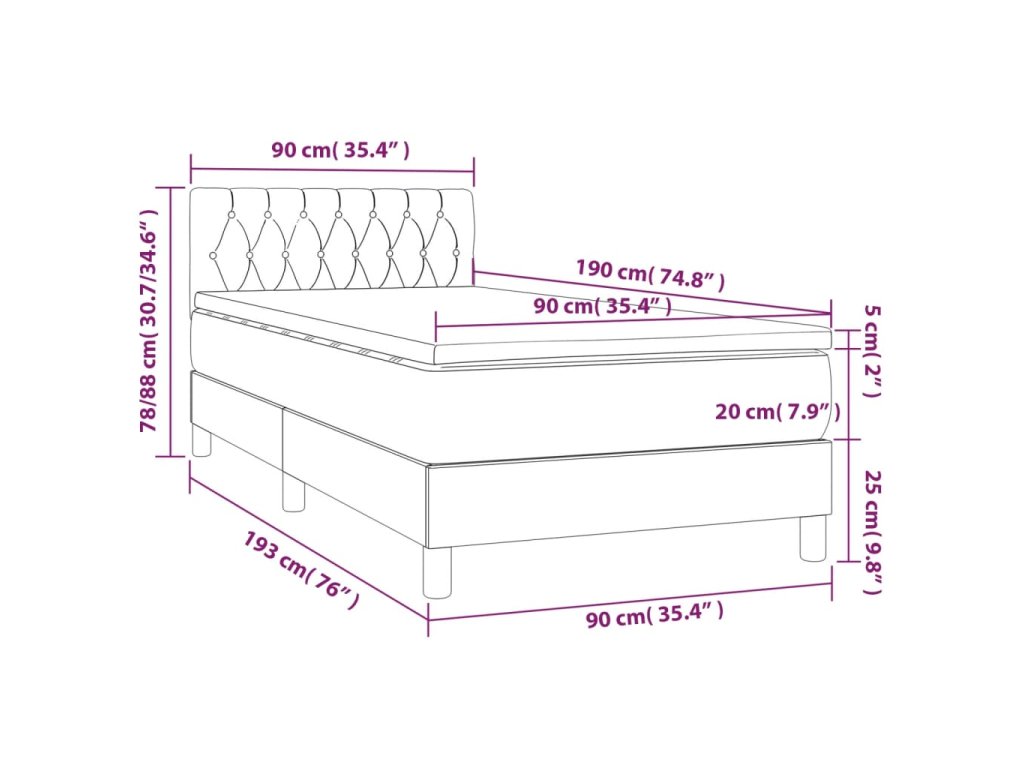 - Rozmery: 90 x 190 x 20 cm (Š x D x V)