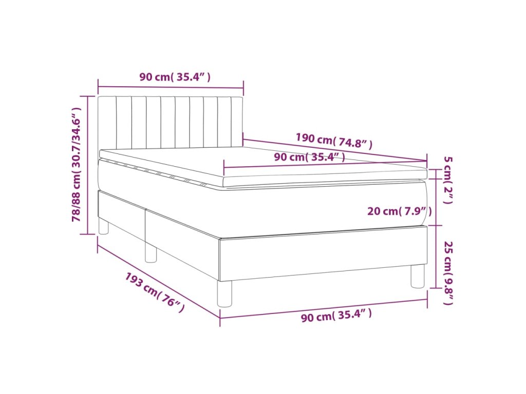 - Rozmery: 90 x 190 x 20 cm (Š x D x V)