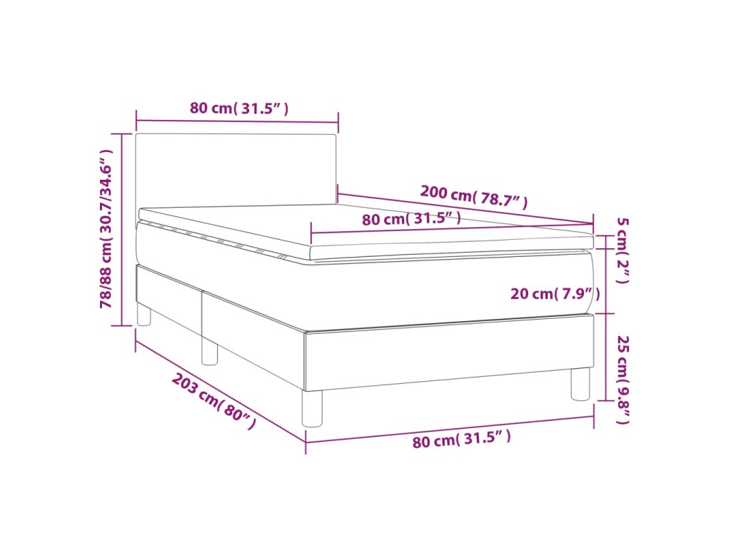 - Rozmery: 80 x 200 x 20 cm (D x Š x V)