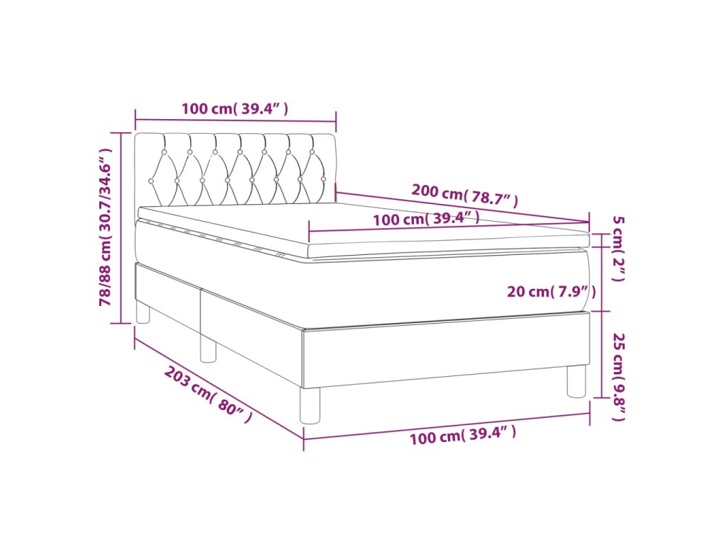 - Celkové rozmery: 203 x 100 x 78/88 cm (D x Š x V)