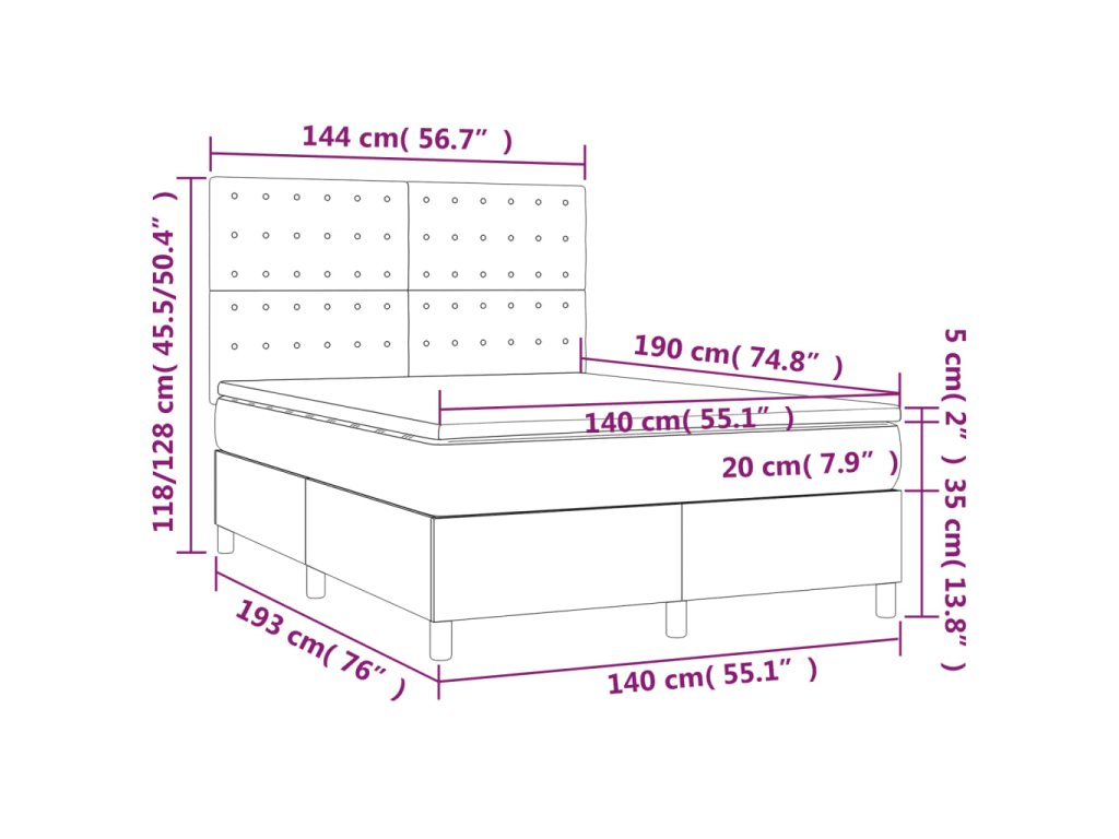 - Rozmery: 140 x 190 x 20 cm (D x Š x V)