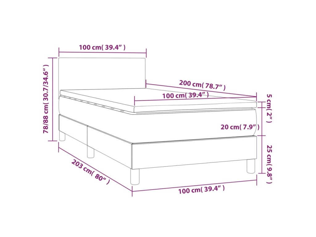 - Celkové rozmery: 203 x 100 x 78/88 cm (D x Š x V)