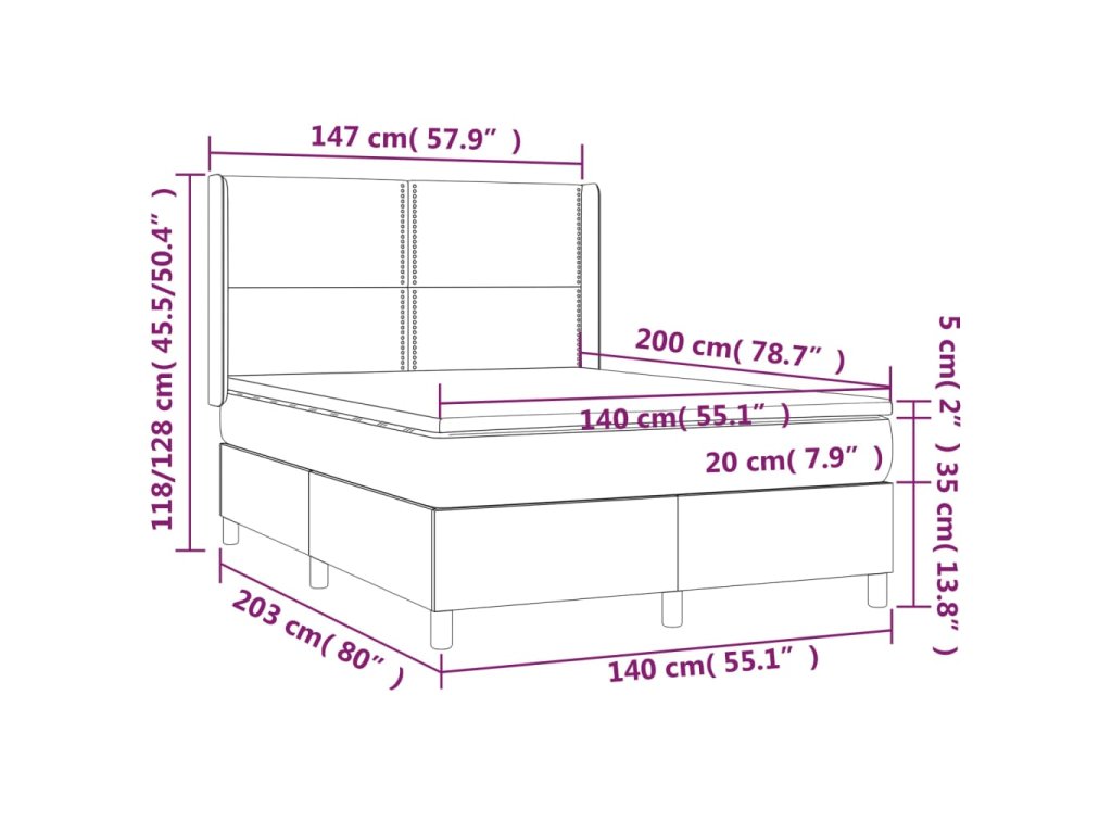 - Celkové rozmery: 203 x 147 x 118/128 cm (D x Š x V)