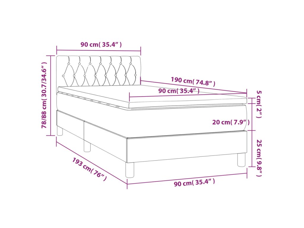 - Rozmery: 90 x 190 x 20 cm (Š x D x V)