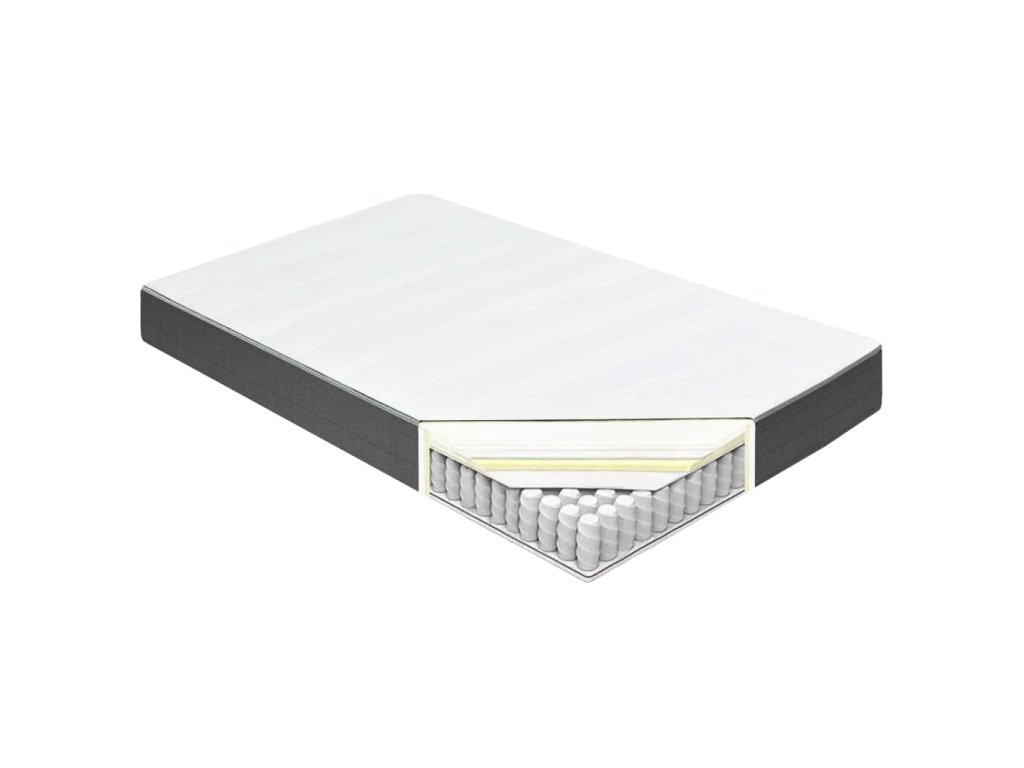 Rám postele vyrobený z MDF a kovu je mimoriadne pevný a odolný. Z postele, ktorá je čalúnená odolnou trvácnou látkou, vyžaruje lákavý vzhľad a ľahko sa čistí. Má extra hrúbku cca. 20 cm. Prešívaný matrac s pružinami boxsprings, ktoré tlmia nárazy, zaisťuje, že budete mať pokojný spánok. Matrac je vyrobený zo špeciálne skonštruovanej peny s vrstvami, ktoré zmierňujú napätie v tlakových bodoch. Dizajn innerspring obsahuje ďalšie cievky, ktoré poskytujú optimálnu podporu. Je to vynikajúce riešenie aj pre ľudí, ktorí sú ťažkí a trpia nadmerným potením. Matrac po tlaku získa späť svoj tvar. Vrchná vrstva matraca sa dá navyše ľahko odstrániť pomocou zipsu a oprať. Tento produkt sa jednoducho montuje.