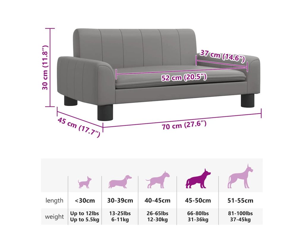 - Pohodlný a mäkký materiál: Pohovka pre domáce zvieratá je čalúnená hrubou a mäkkou penou a potiahnutá umelou kožou, ktorá poskytuje domácemu miláčikovi dostatočnú oporu a vynikajúce pohodlie.