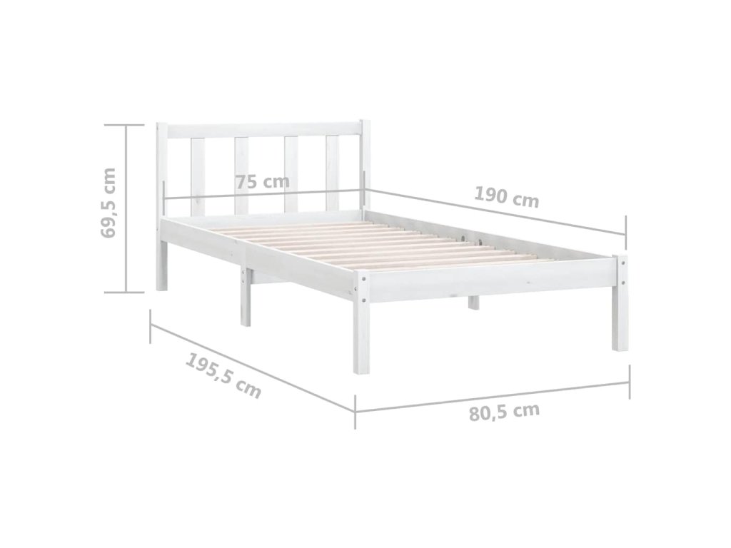 Základňa postele je vyrobená z borovicového masívu, vďaka čomu je mimoriadne pevná a trvácna. Vhodné rozmery matraca na tento posteľný rám sú 75x190 cm (2FT6 malé jednolôžko). Na tejto posteli si vychutnáte kvalitný spánok každú noc!