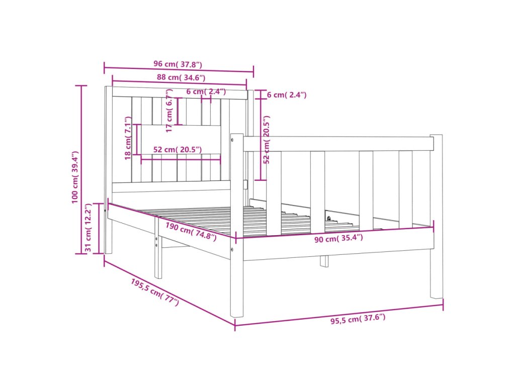 - Tento rám postele je vhodný pre matrac s rozmermi 90 x 190 cm (3FT jednolôžko).