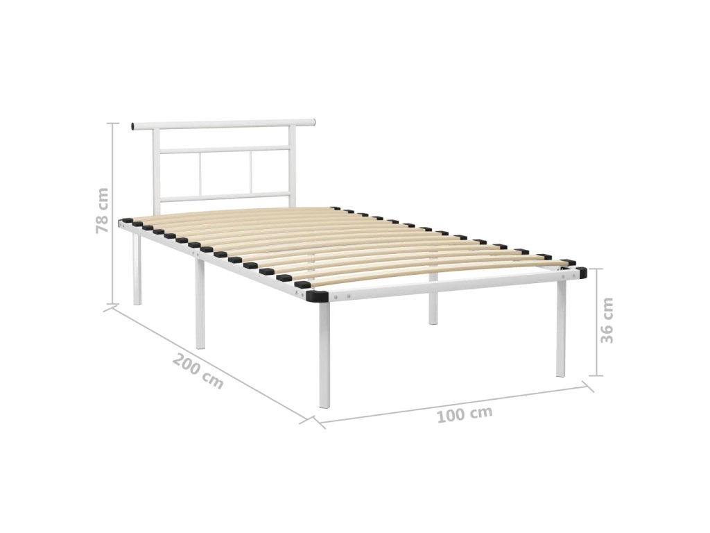 Posteľný rám má robustnú kovovú konštrukciu. Pevné rošty z preglejky poskytujú potrebnú oporu. Vhodné rozmery matraca na túto posteľ sú 100 x 200 cm.