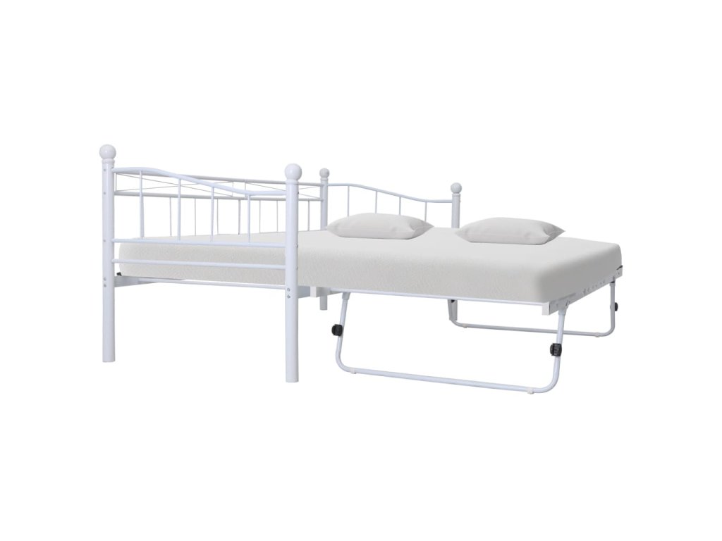 Rozťahovacia pohovka slúži ako posteľ na štyroch kolieskach, pričom na dvoch z nich sa nachádza brzda. Vďaka tejto vysúvacej posteli budete mať vždy dosť miesta na spanie pre vašich hostí. Dá sa používať ako posteľ aj ako sedačka do izby, a tak vďaka nej optimálne využijete dostupný priestor. Pevný kovový rám odoláva poškrabaniu aj nárazom. Zaoblené rošty sa postarajú o pohodlný spánok. Tento štýlový multifunkčný posteľný rám predstavuje dokonalý doplnok do každej izby, v ktorej chýba posteľ alebo štýlové sedenie.