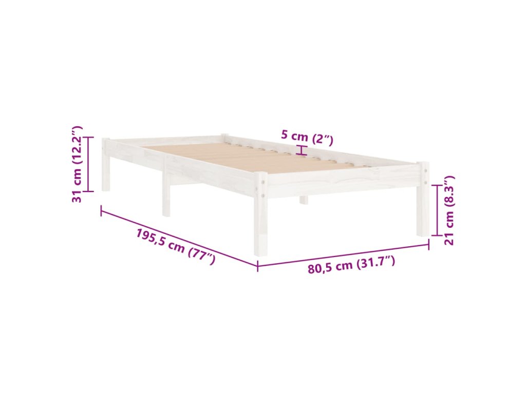 Základňa postele je vyrobená z borovicového masívu, vďaka čomu je mimoriadne pevná a trvácna. Vhodné rozmery matraca na tento posteľný rám sú 75x190 cm (2FT6 malé jednolôžko). Na tejto posteli si vychutnáte kvalitný spánok každú noc!