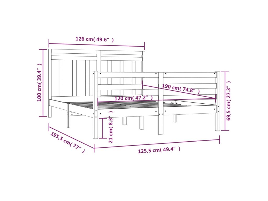 - Tento rám postele je vhodný pre matrac s rozmermi 120 x 190 cm (4FT malé dvojlôžko).