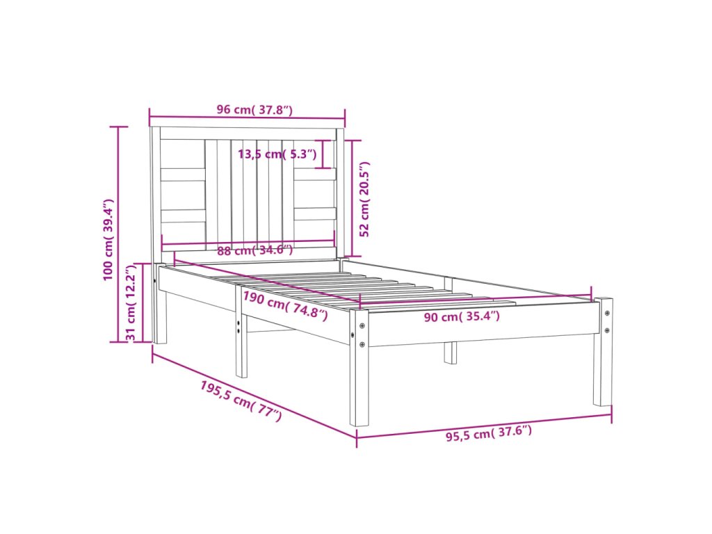 - Rozmery rámu postele: 195,5 x 95,5 x 31 cm (D x Š x V)