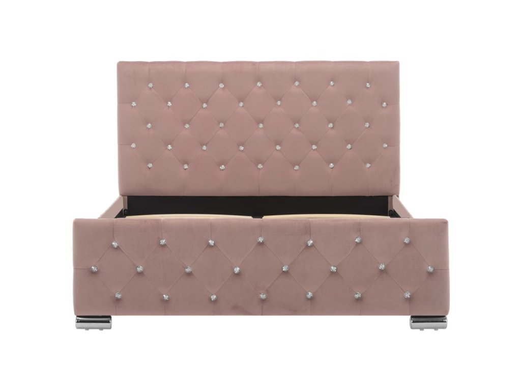 Posteľný rám sa vyznačuje nenápadným, úhľadným dizajnom a do vašej spálne vnesie nádych elegancie. Posteľný rám je vyrobený z dreva a ocele, a preto je mimoriadne pevný a trvácny. Kovové nohy posteli dodávajú potrebnú odolnosť. Posteľ je okrem toho potiahnutá príjemným a trvácnym zamatom, ktorý sa ľahko čistí. Vhodné rozmery matraca na túto posteľ sú 120 x 200 cm.
