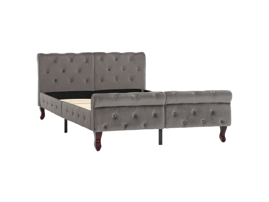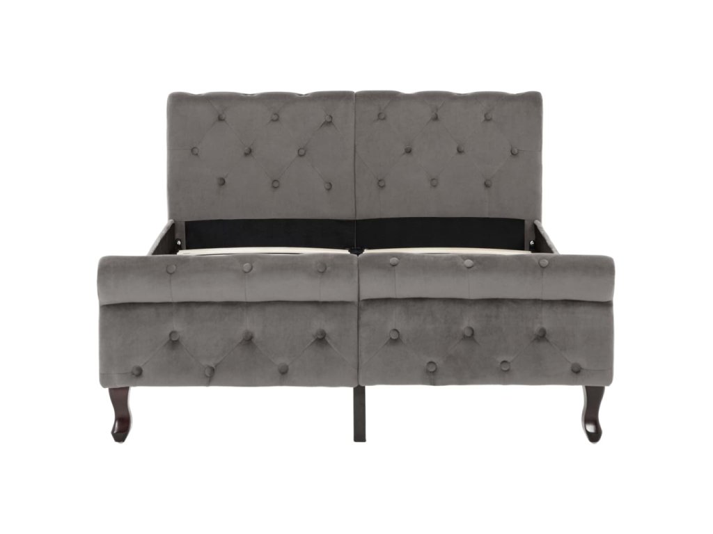 Táto posteľ do vašej spálne vnesie nádych elegancie. Posteľný rám je vyrobený z preglejky a ocele, a preto je mimoriadne pevný a trvácny. Nohy z borovicového masívu posteli dodávajú potrebnú odolnosť. Posteľ je okrem toho potiahnutá príjemnym a mäkkým zamatom, ktorý je hladký na dotyk. Posteľný rám sa jednoducho montuje.