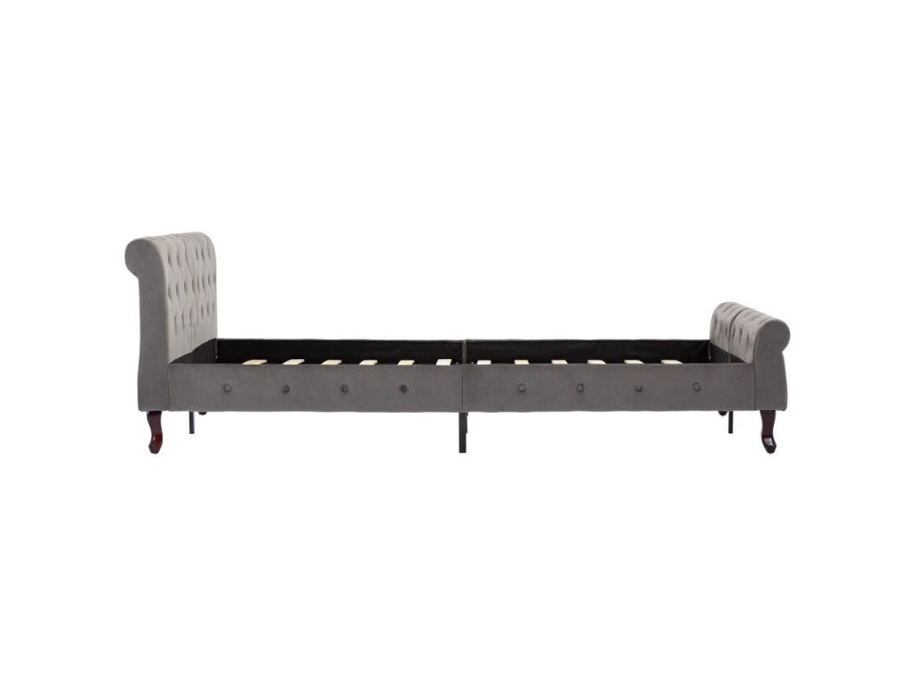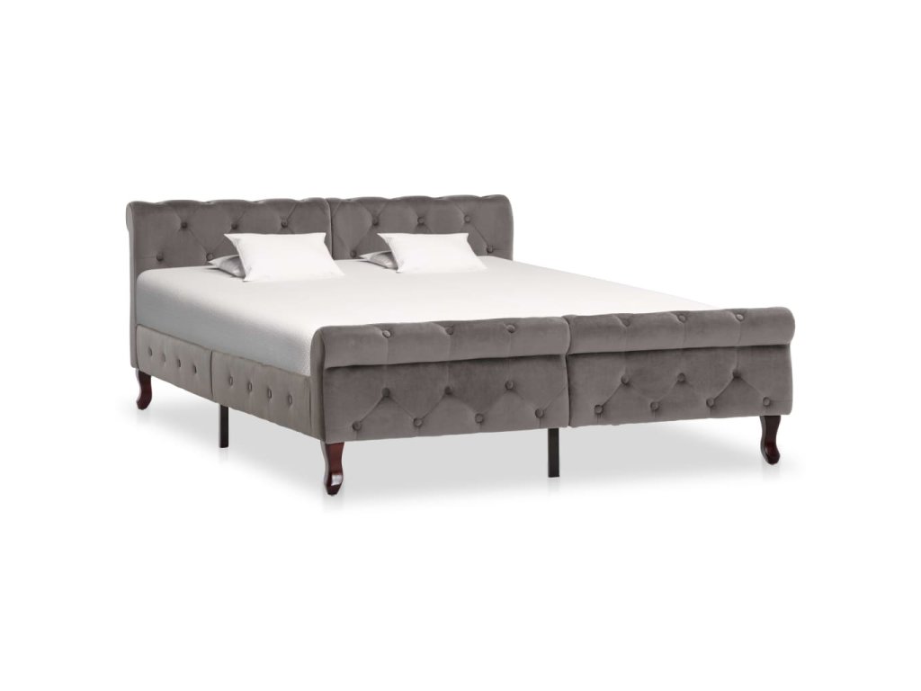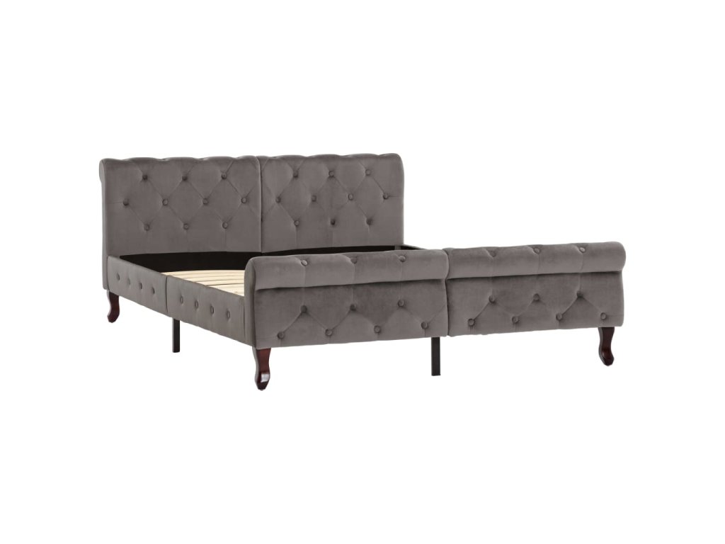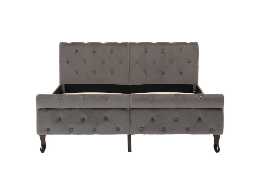 Táto posteľ do vašej spálne vnesie nádych elegancie. Posteľný rám je vyrobený z preglejky a ocele, a preto je mimoriadne pevný a trvácny. Nohy z borovicového masívu posteli dodávajú potrebnú odolnosť. Posteľ je okrem toho potiahnutá príjemnym a mäkkým zamatom, ktorý je hladký na dotyk. Posteľný rám sa jednoducho montuje.