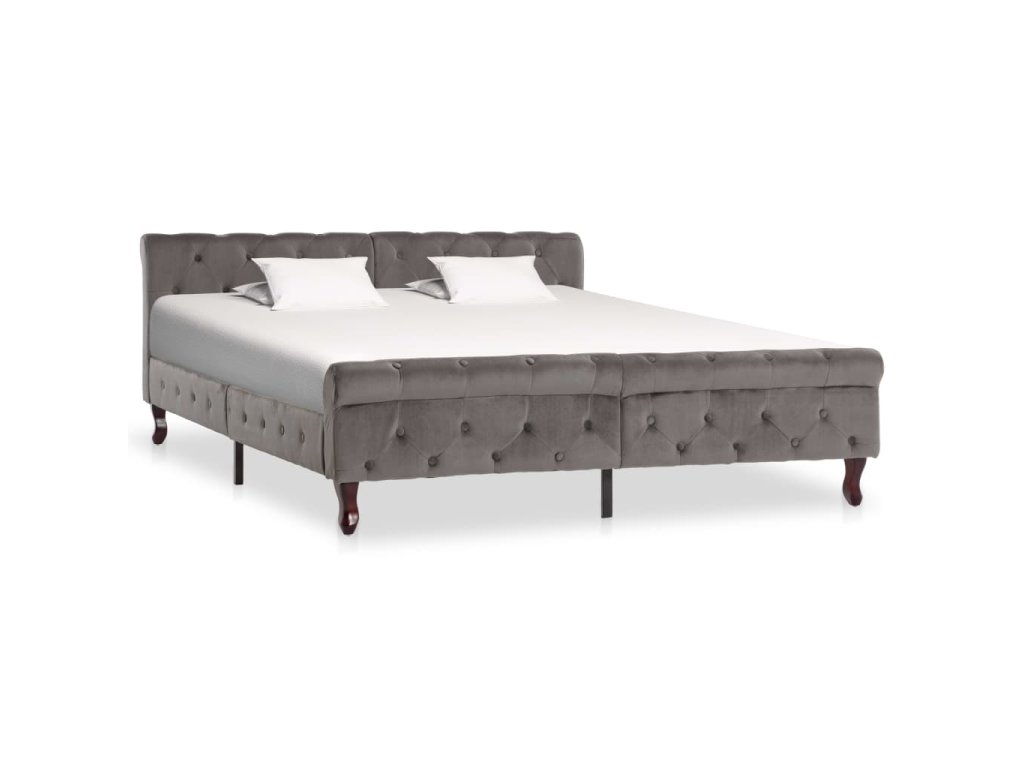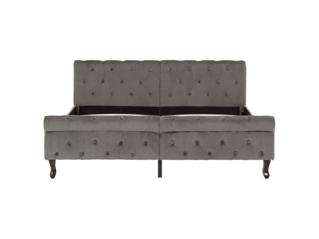 Táto posteľ do vašej spálne vnesie nádych elegancie. Posteľný rám je vyrobený z preglejky a ocele, a preto je mimoriadne pevný a trvácny. Nohy z borovicového masívu posteli dodávajú potrebnú odolnosť. Posteľ je okrem toho potiahnutá príjemnym a mäkkým zamatom, ktorý je hladký na dotyk. Posteľný rám sa jednoducho montuje.
