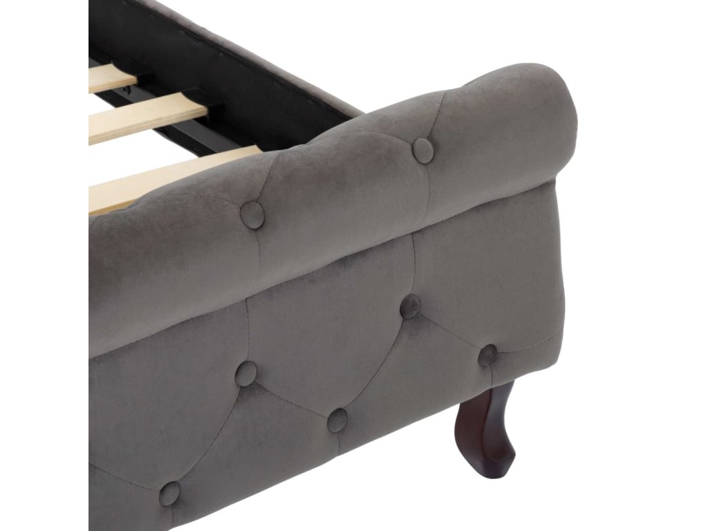 Táto posteľ do vašej spálne vnesie nádych elegancie. Posteľný rám je vyrobený z preglejky a ocele, a preto je mimoriadne pevný a trvácny. Nohy z borovicového masívu posteli dodávajú potrebnú odolnosť. Posteľ je okrem toho potiahnutá príjemnym a mäkkým zamatom, ktorý je hladký na dotyk. Posteľný rám sa jednoducho montuje.