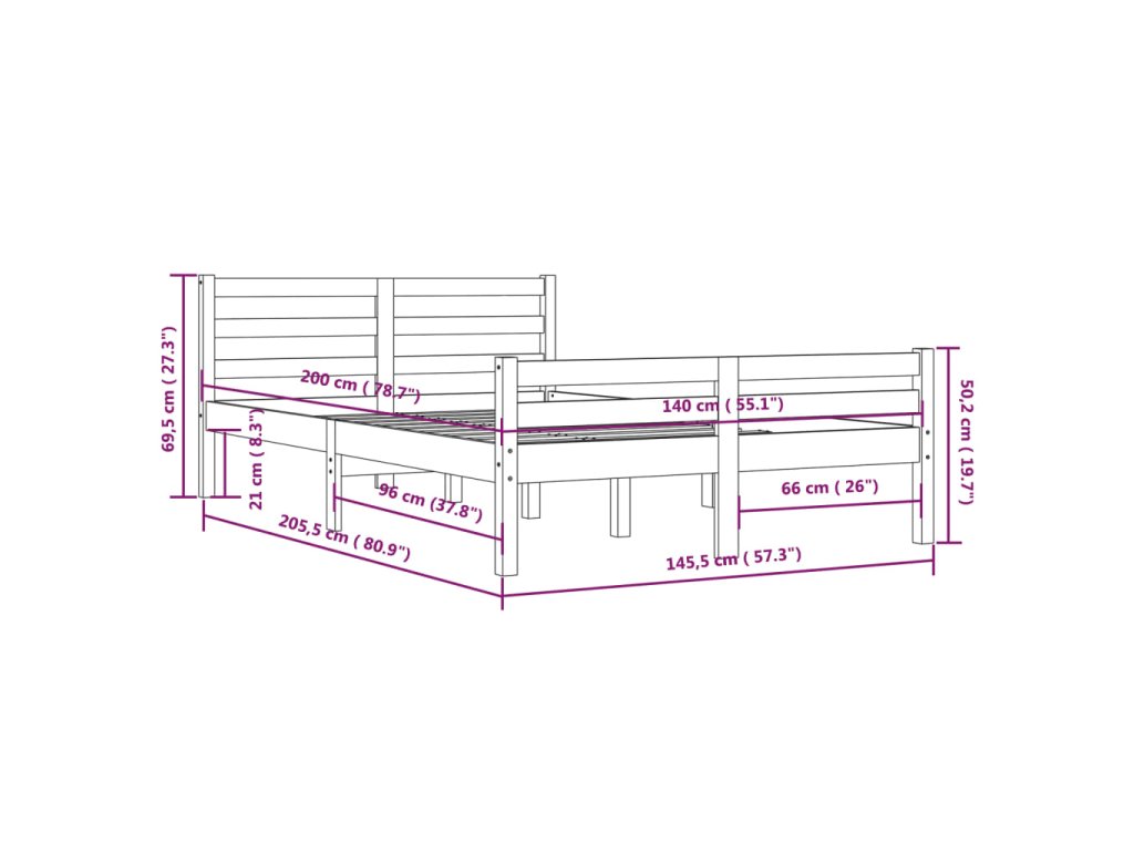 - Tento rám postele je vhodný pre matrac s rozmermi 140 x 200 cm