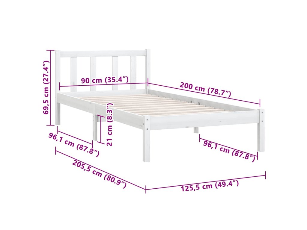 Základňa postele je vyrobená z masívneho borovicového dreva a je mimoriadne pevná a odolná. Tento rám postele je vhodný pre matrac s rozmermi 90 × 200 cm. Na tejto posteli si môžete vychutnať skvelý zážitok zo spánku každú noc!