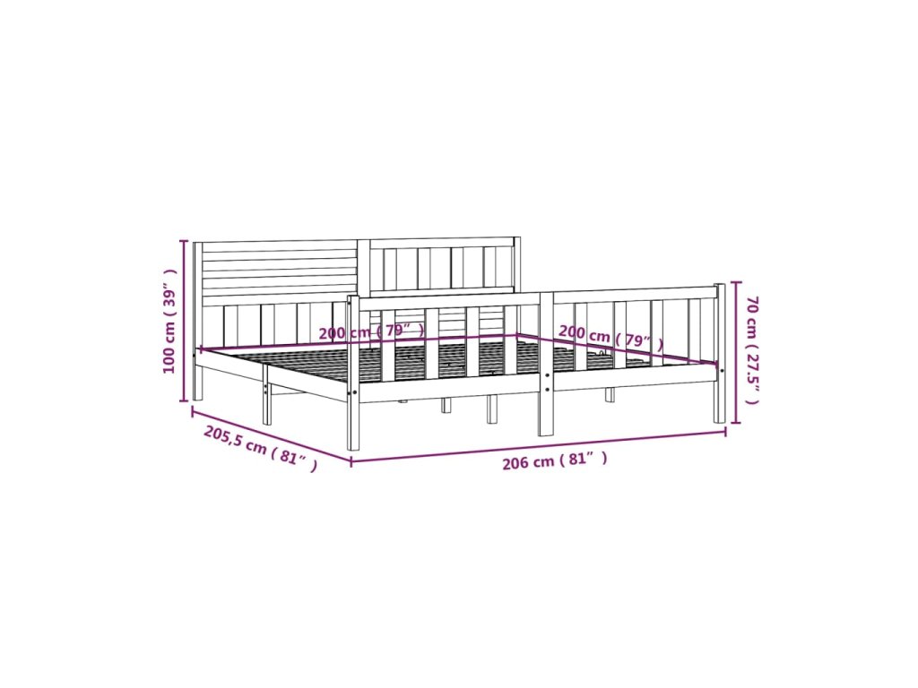 - Celkové rozmery rámu postele: 206 x 205,5 x 100 cm (d x š x v)