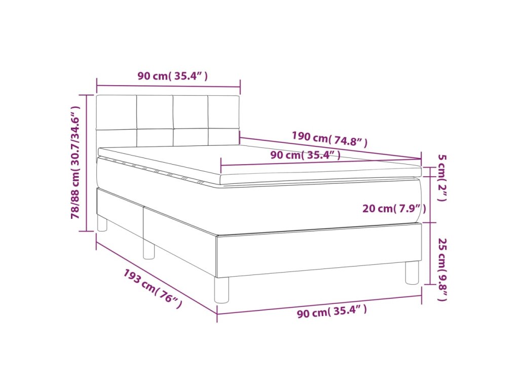 - Rozmery: 90 x 190 x 20 cm (Š x D x V)