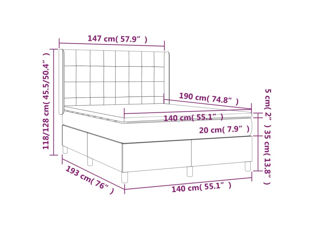 - Rozmery: 140 x 190 x 20 cm (D x Š x V)
