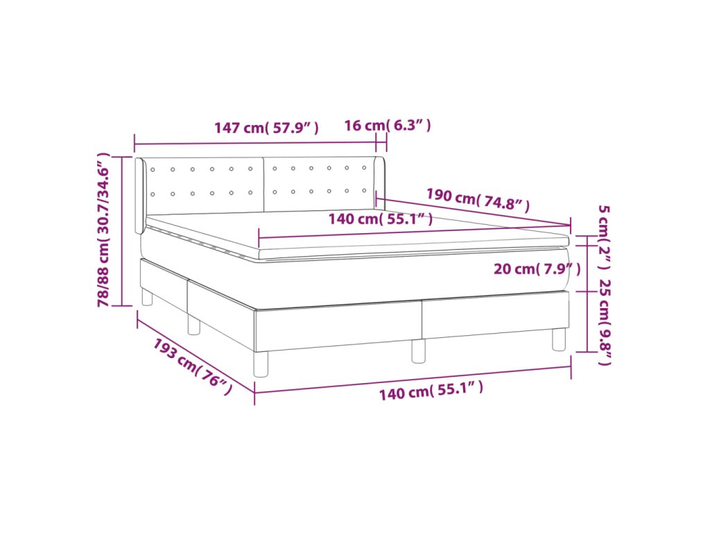 - Rozmery: 140 x 190 x 20 cm (D x Š x V)