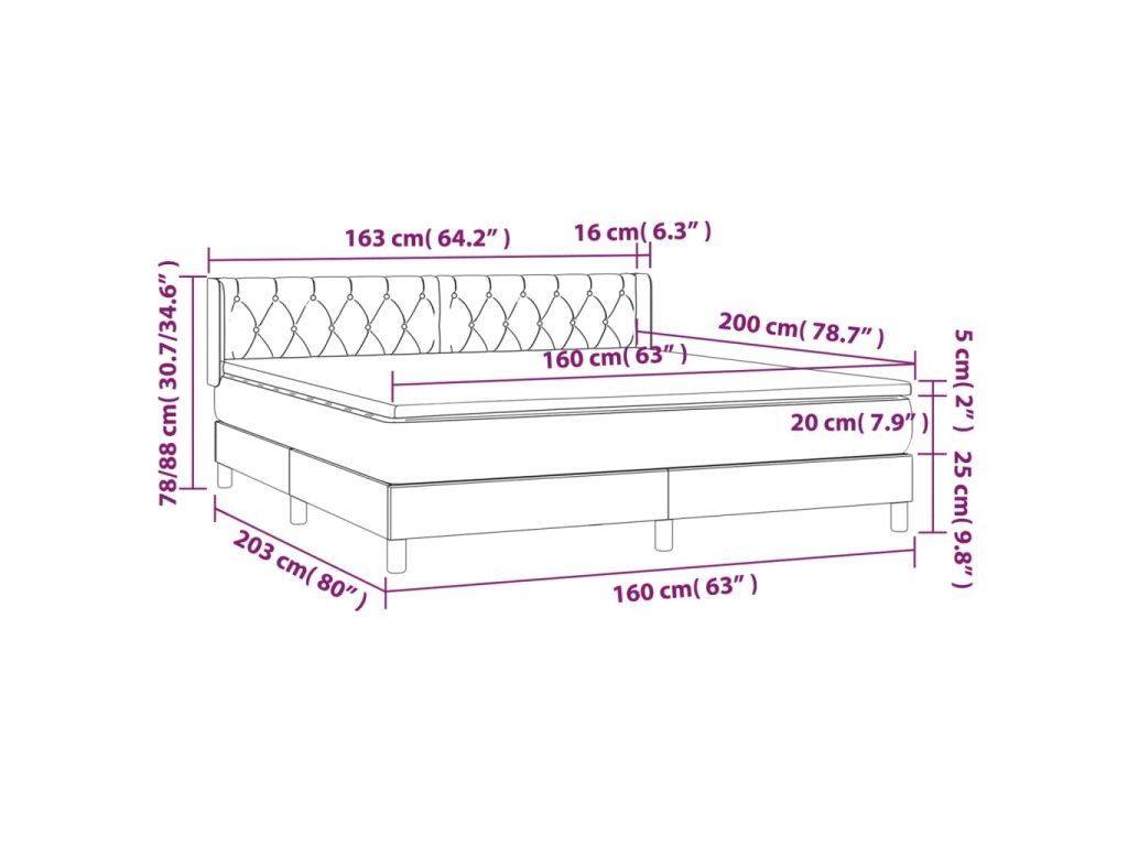 - Rozmery: 203 x 163 x 78/88 cm (D x Š x V)