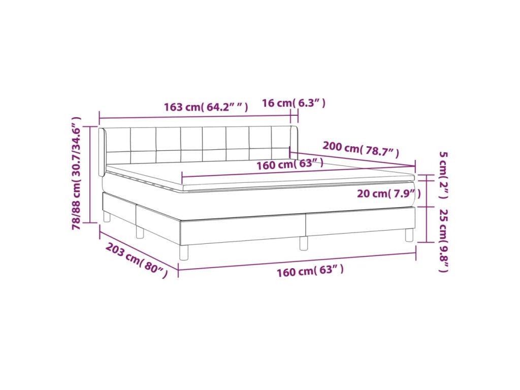 - Rozmery: 203 x 163 x 78/88 cm (D x Š x V)
